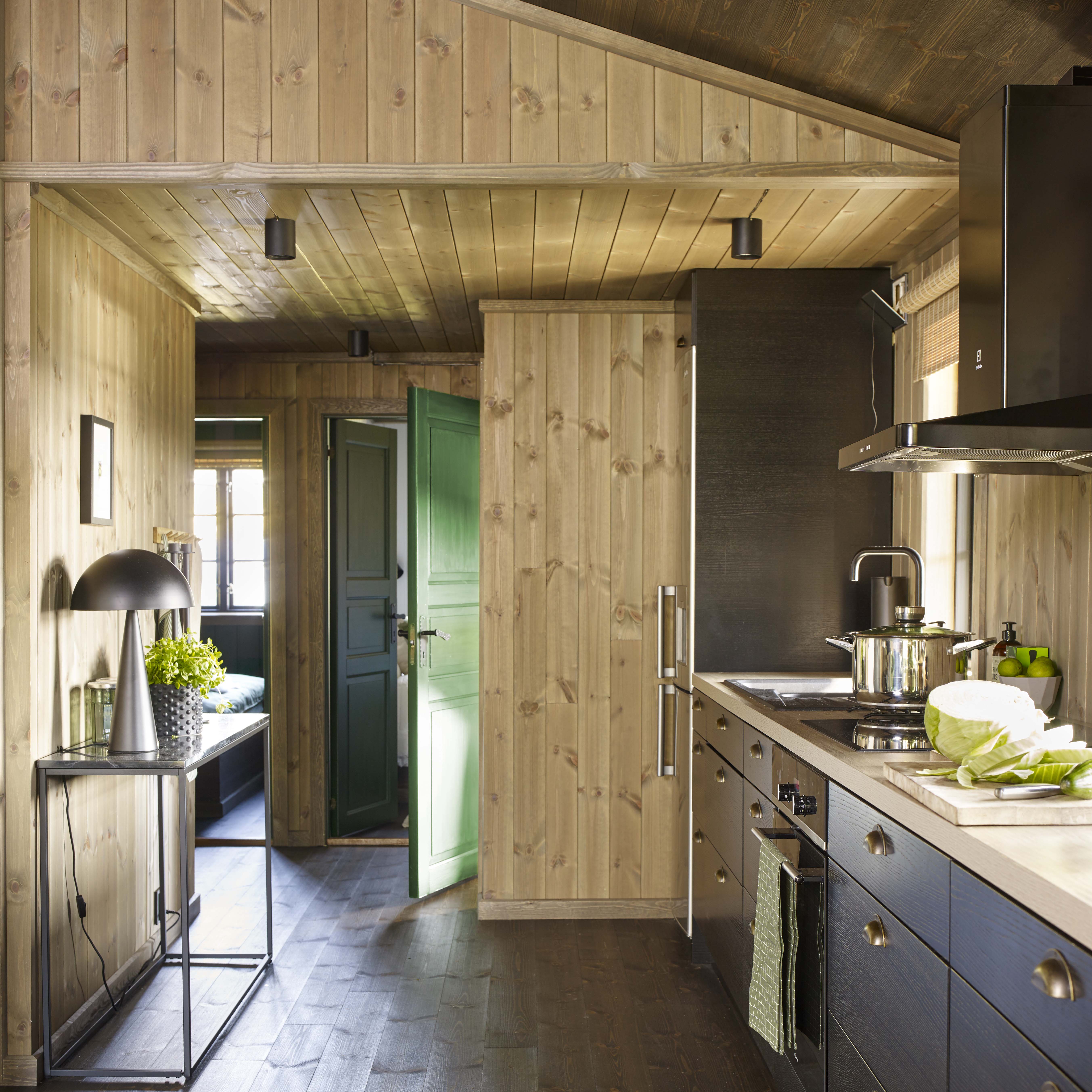 Planen var å beise veggene og sette inn nytt kjøkken, men med stylisthjelp fra Hytteliv, og panel, gulv og lister fra Moelven fikk de nybakte hytteeierene en totalrenovert hytte med personlig stil .