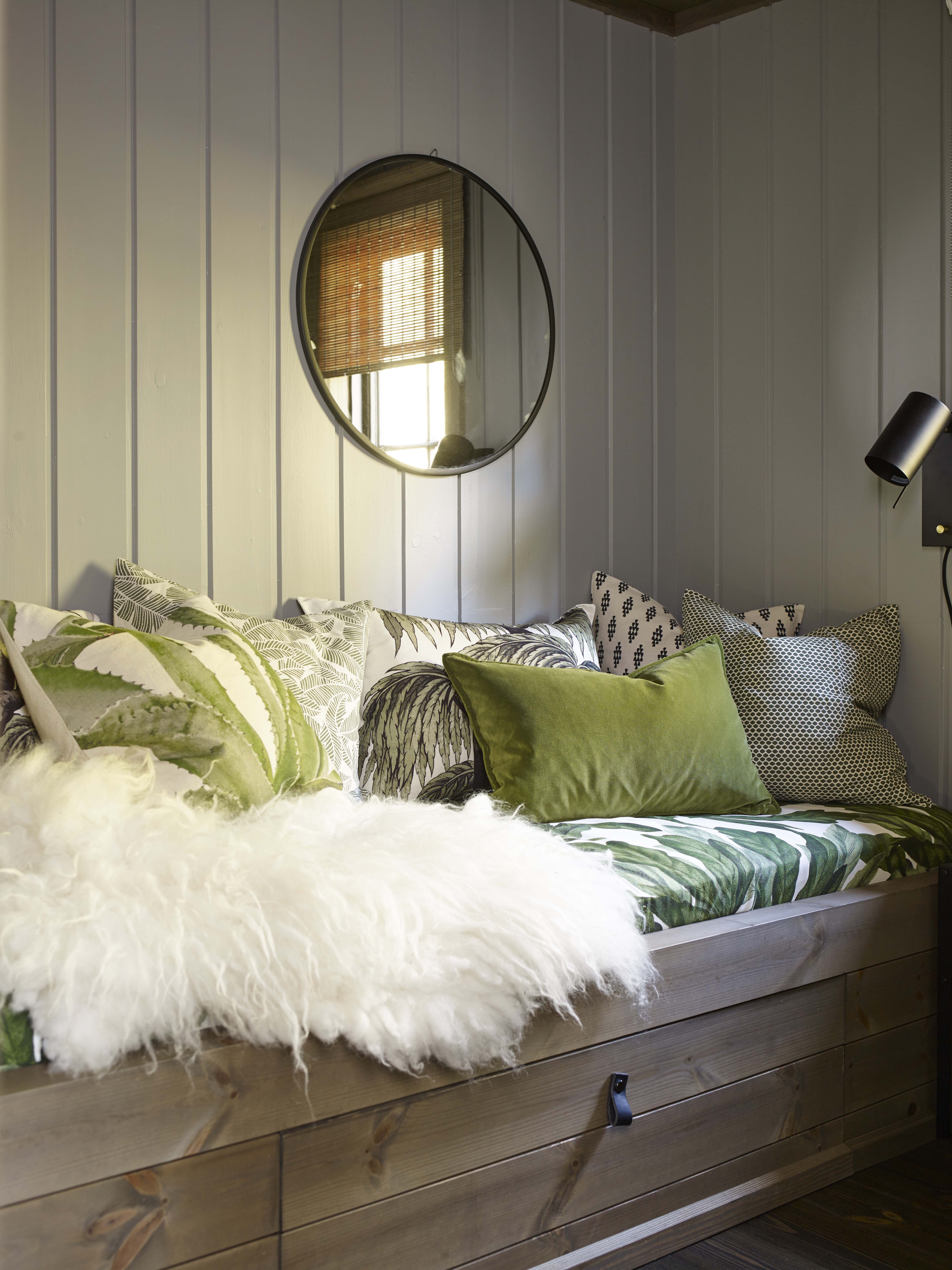 Til valg av farger, stil og utforming av interiøret har paret fått god hjelp av Hyttelivs interiørdesigner Siv Brenne. – Når det kommer til farger, er begge veldig glad i grønt. Utover det ga vi henne stort sett frie tøyler. Vi følte vi måtte gripe muligheten, slik at hun kunne skape en rød tråd, forteller Sidsel.