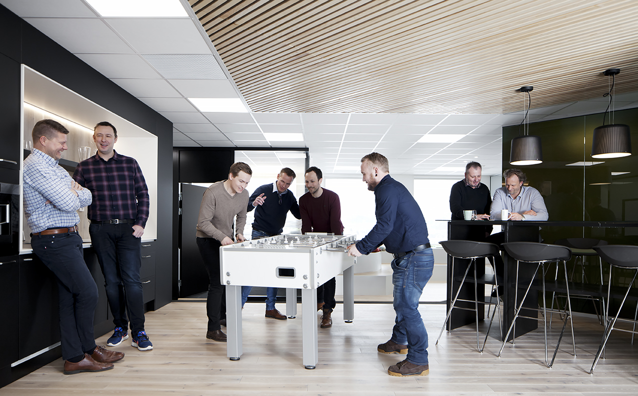 Arbeidsplassen består nå av både cellekontorer, landskap, møterom, prosjektrom og sosiale soner. Det legges stor vekt på de sosiale sonene, arealer som gjør det godt å komme litt ut av kontorene innimellom. Lyse, luftige, gjennomgående og åpne arenaer, gjør det mulig å møtes til kaffe, uformelle samtaler og til og med til en liten fotballturnering.