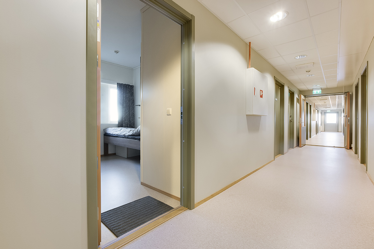 3 hybelbygg i 2 etasjer. 126 hybler. BTA 2570 m2