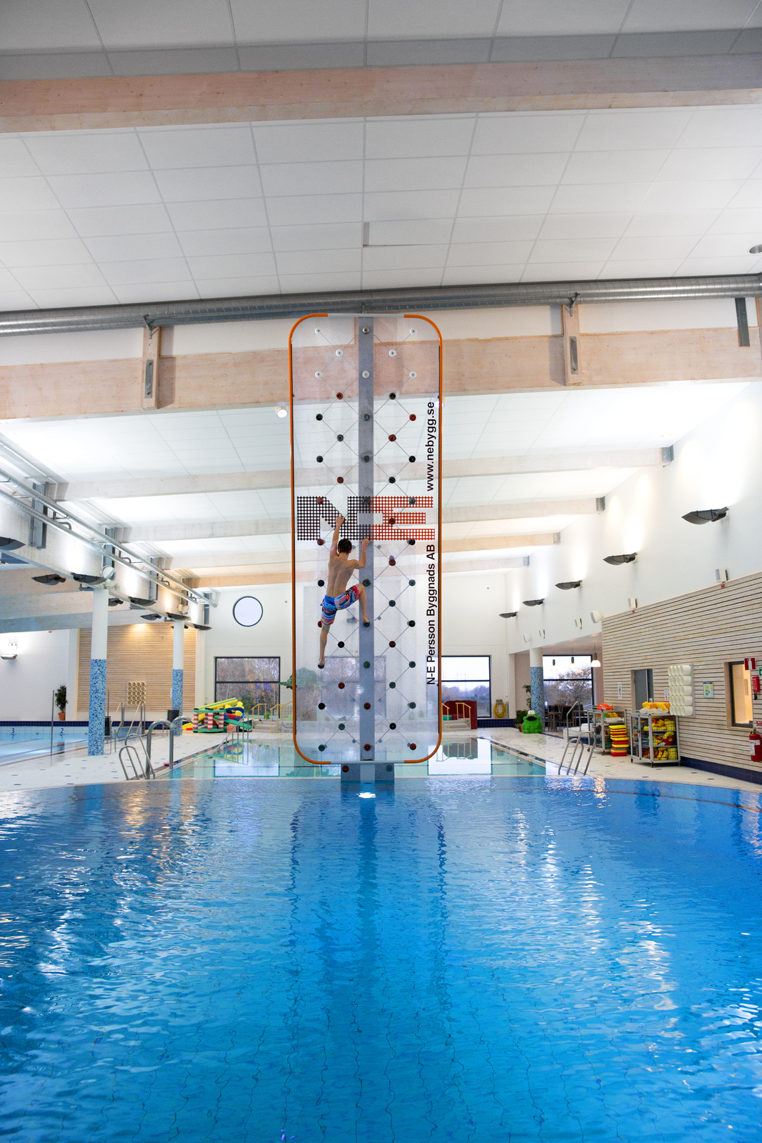Hoppbassäng, vattenrutschbana och barnbassäng finns också här.