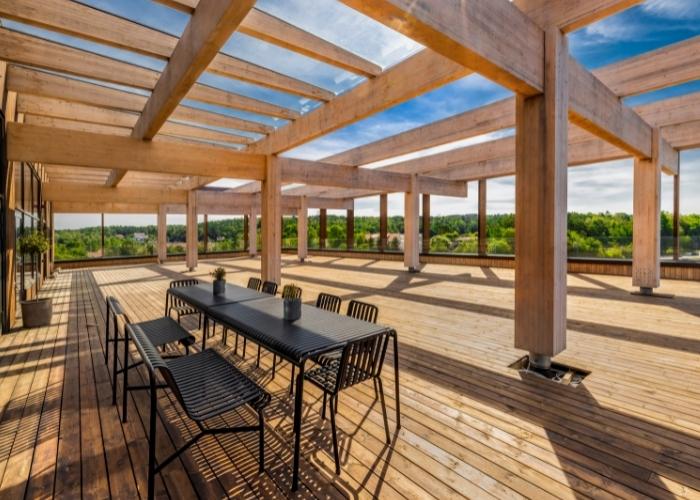 Limträ har hög hållfasthet i förhållande till egenvikten. I den jämförelsen är det faktiskt lika starkt som stål! Limträ har dessutom högt brandmotstånd och är ett konstruktionsmaterial som ger minsta möjliga klimatpåverkan.