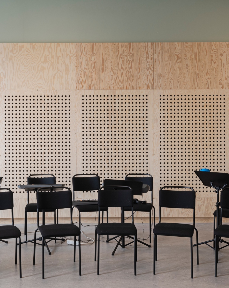 På Silverkällan i Göteborg trivs både unga och gamla. Här delar äldreboende och grundskola lokaler. Idrottshall, korridorer och musiksal kläds av Moelvens Studiopanel i furu, både perforerade och släta skivor. För att fullborda uttrycket har även lister i liknande kulör som Studiopanelen använts.
