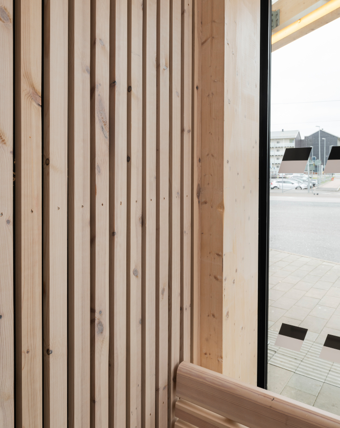 Västtrafik har byggt ett nytt resecentrum i Angered. Wingårdhs Arkitekter har ritat och det är uppfört enligt höga miljökrav. Vi har levererat interiöra brandskyddade paneler, både ribbor och plywood.