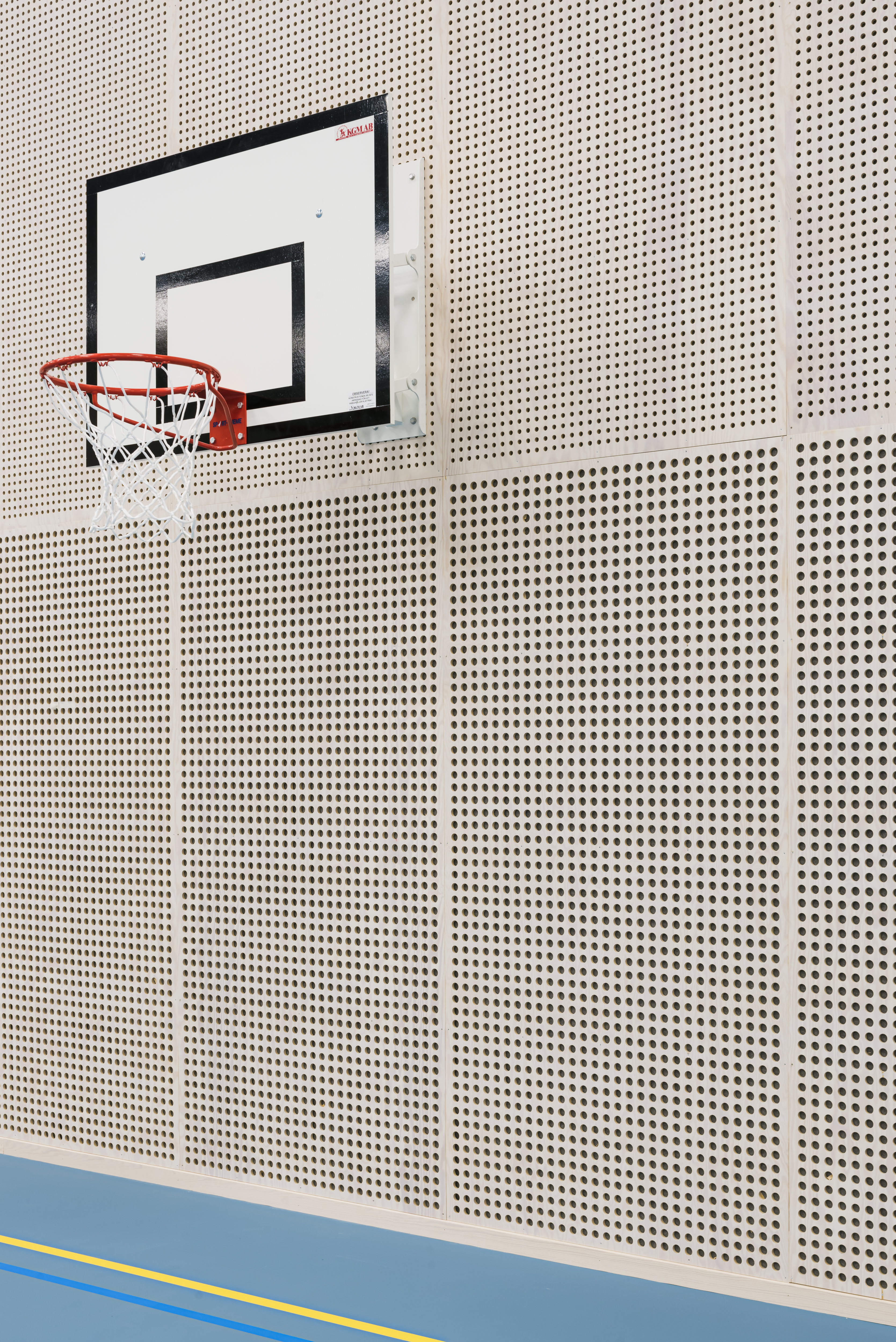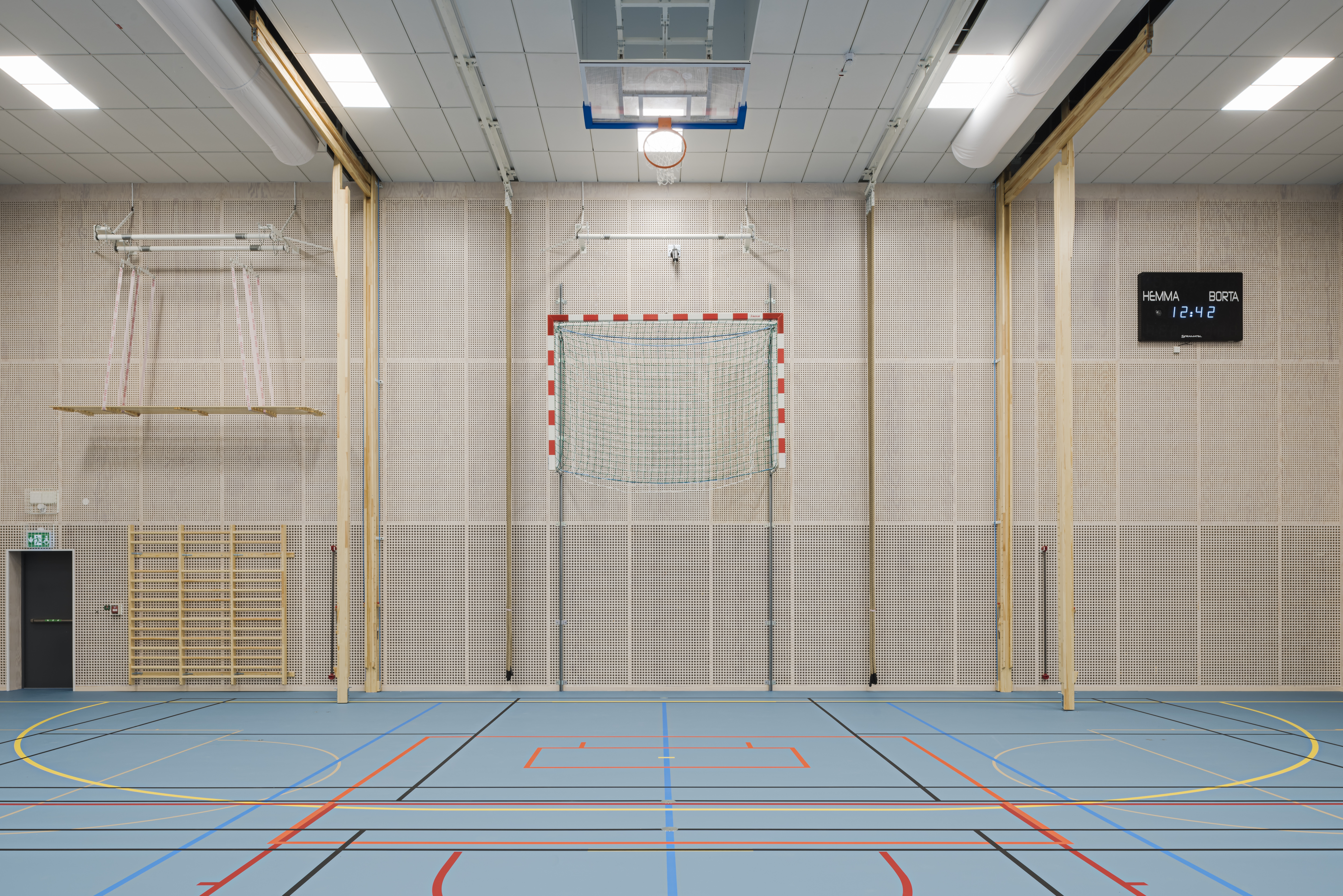 Önstaskolan har äntligen fått en ny efterlängtad idrottshall efter att den gamla idrottshallen brunnit ned. Den nya hallen är beklädd invändigt med Studiopanel Furuplywood som är brandskyddad, perforerad och vitlackad.
