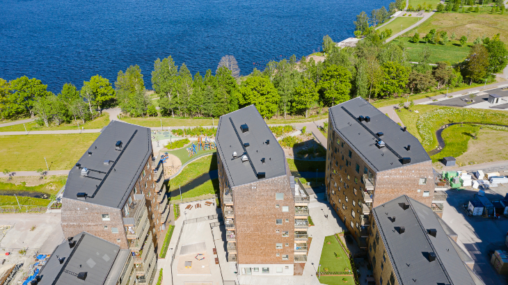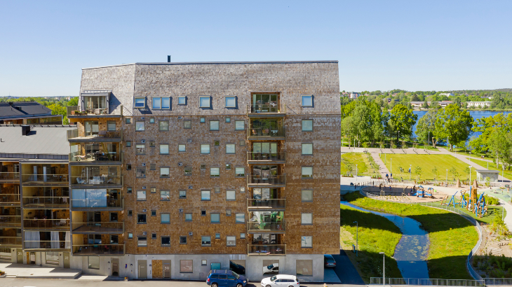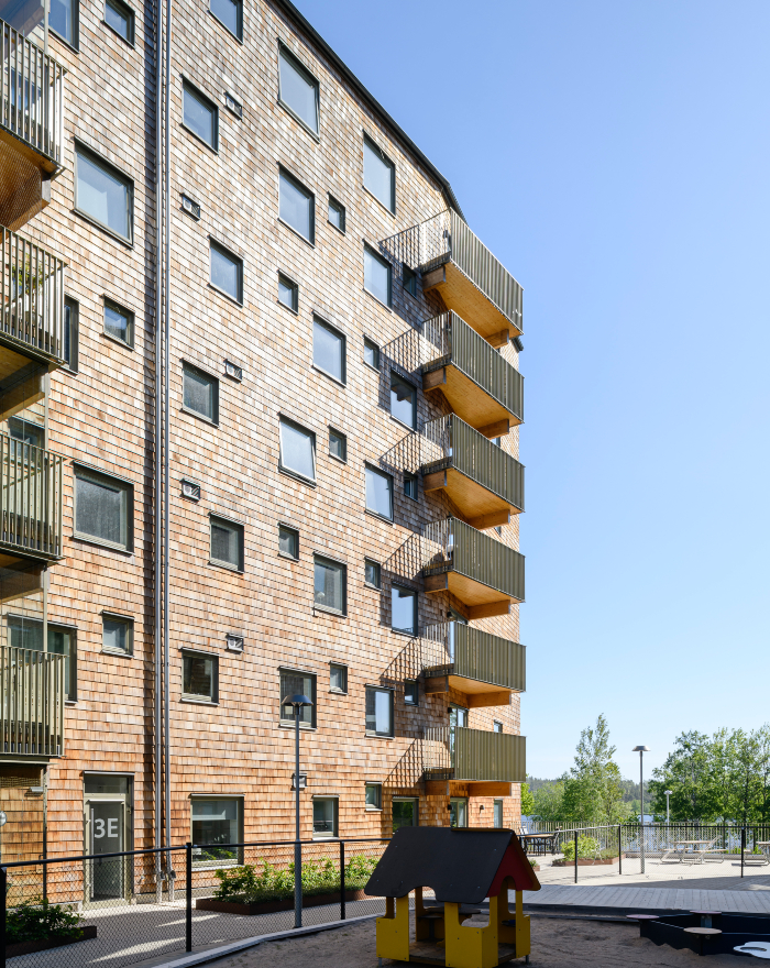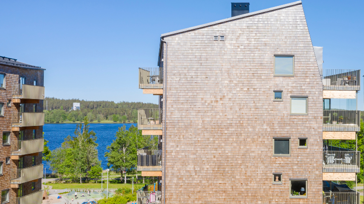 I skrivande stund är Trummens Strand i Växjö det största träprojektet i Sverige, och ett av de största träprojekten i Europa. Du hittar projektet söder om stadskärnan med utsikt över sjön Trummen. Huskropparna är byggda med massivträ och täckta med cederträspån från Moelven. Cederträspån är ett exklusivt men också prisvärt val som fasadmaterial till flerbostadshus.