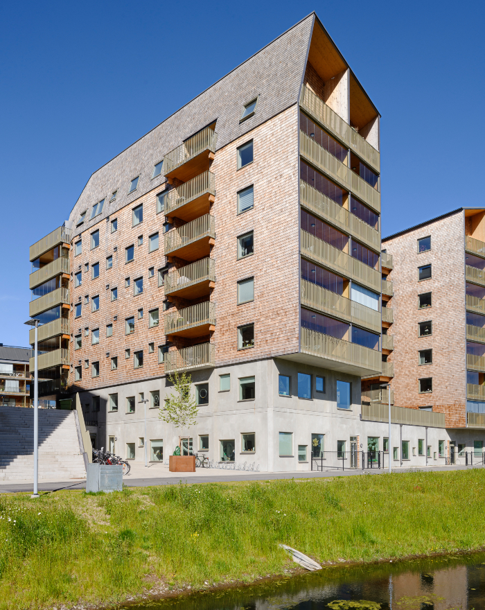 Ett typexempel på fördelarna med träbyggnation. Estetiskt tilltalande arkitektur kombinerat med miljötänk i ett paket som andas god stadsplanering och hållbarhet. Ett landmärke längst Trummens strand som kommer att glädja både förbipasserande och boende i många år framöver.