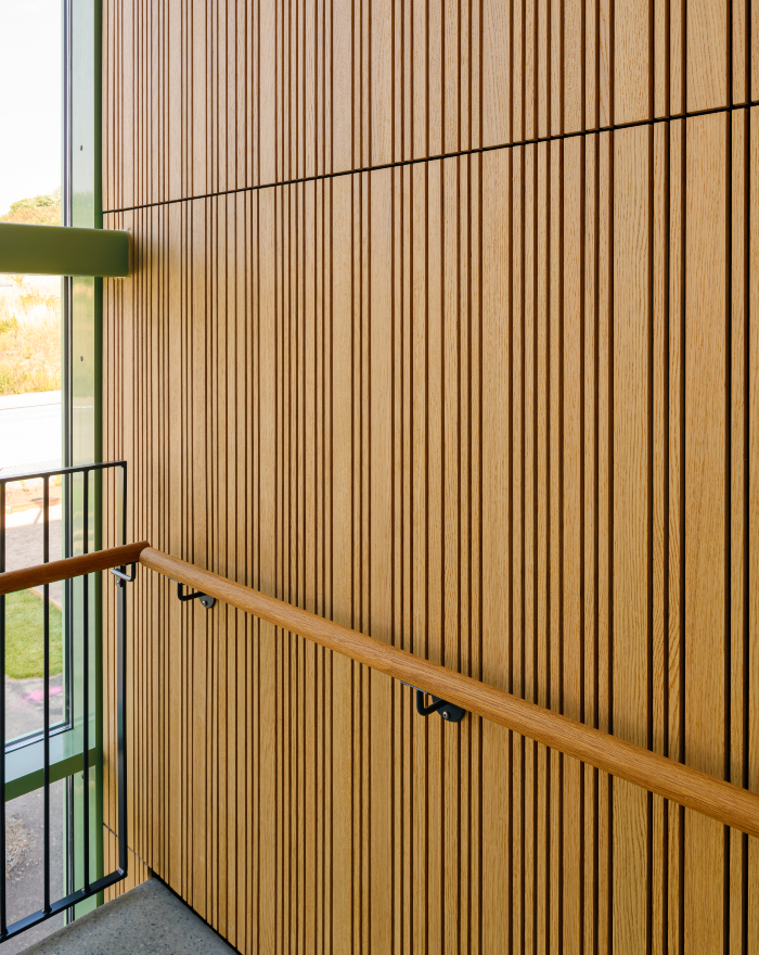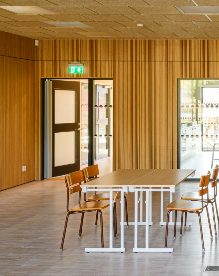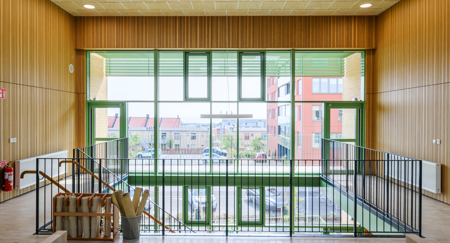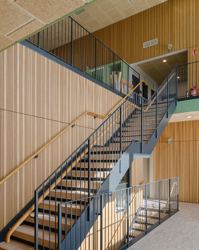 Brandsäkra och akustiska innerpanelen Studio Stripe pryder den nya förskolan och grundskolan Villa My i Ystad. Studio Stripe består av genomgående trä och är brandskyddat med en integrerad svart akustikduk. I detta projekt valde man en lackad ekfanérad panel med random design.
