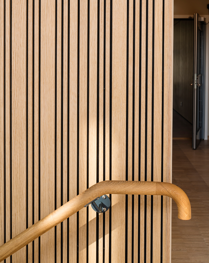 Med konceptet Studio Stripe får man inte bara en fin panel att titta på, man minimerar också det studsande ljudet. Den bakomliggande isoleringen och akustikduken absorberar ljudet istället och tack vare det upplever man platsen som lugn.