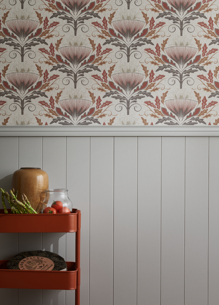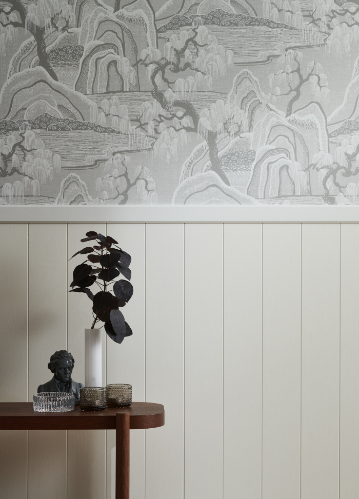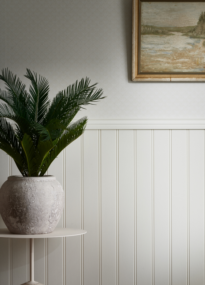 Bröstpanel skapar en ombonad och hemtrevlig känsla. Med Reginakonceptet kan du mixa och matcha fram din favoritkombination. Följ tre enkla steg för att skapa helheten: Regina Vägg Dekor - välj profil & kulör. Regina Bröstlist och Sockel - välj stil och kulör. Tapet eller väggfärg - välj mönster, enfärgat och kulör.